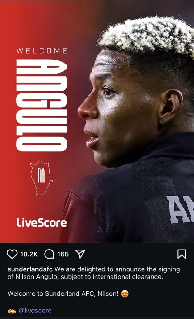 Sunderland AFC are delighted to announce the signing of Nilson Angulo, subject to international clearance.